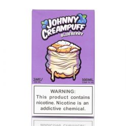 Johnny Creampuff Blueberry E-liquid by Tinted Brew Juice Co. takes a dollop of magnificent blueberry infused custard and injects it into a warm fluffy creampuff shell to create a delectable dessert flavor, in vape juice form.