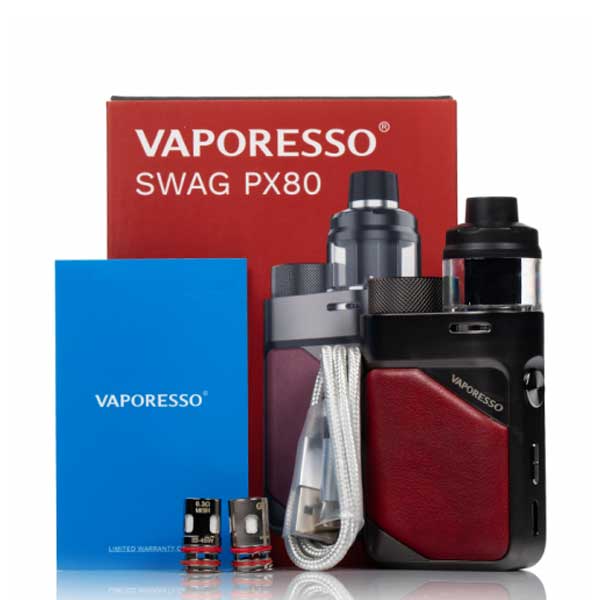- Vaporesso SWAG PX80 available colors: Emerald Green, Imperial Red, Brick Black, Leather Brown, Gunmetal Grey