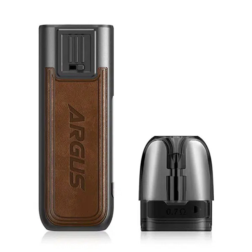 Voopoo Argus 20w pod can record and manage your daily vaping intelligently, the Voopoo Argus Pod Kit can reach up to 20W with it?s built-in power adjustment. With the refined zinc alloy and leather material, the Argus Pod offers a most comfortable feeling to hold and use being both compact in it?s design and durable for daily use. In addition, both the advanced ergonomic mouthpiece will fit perfectly your lips and Voopoo?s own distinctive ITO atomization technology that allows for delightful MTL vaping experiences every time you use the Argus Pod.